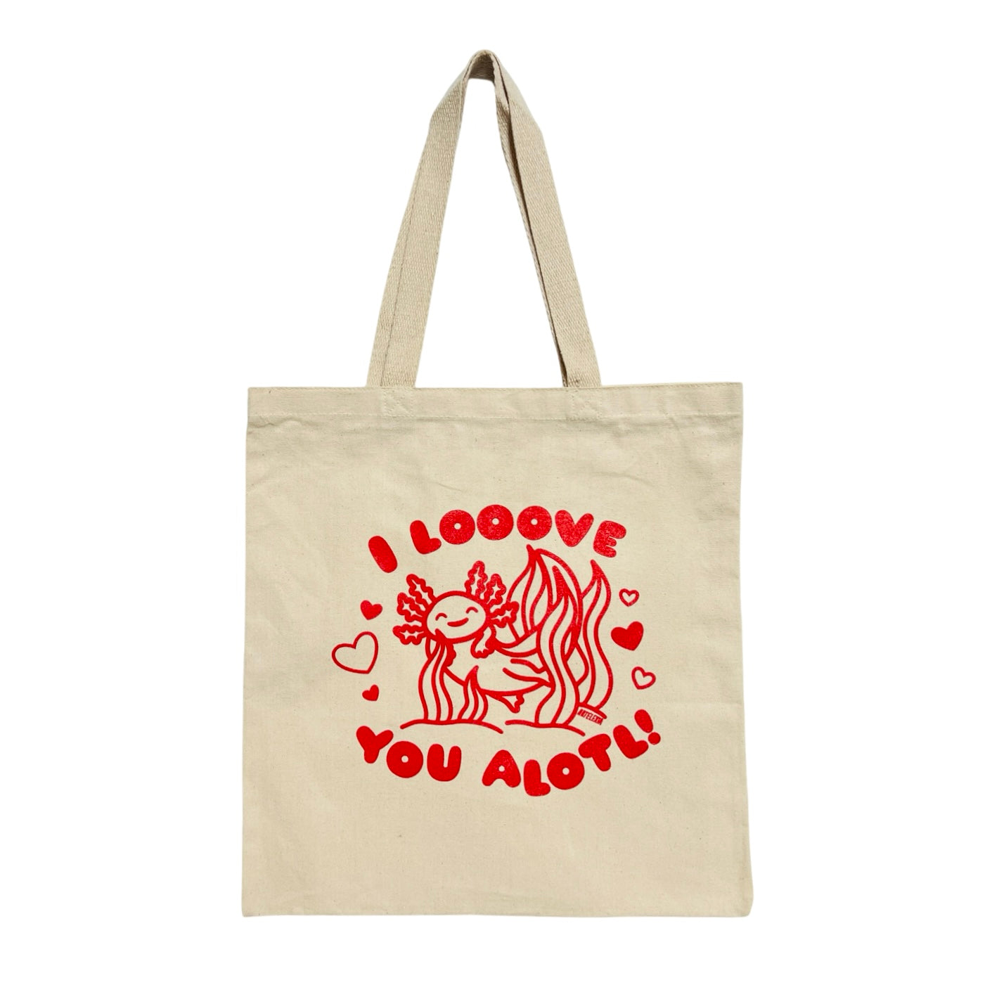 Show your love with the I Looove You Alotol! Tote Bag! This adorable canvas tote features a charming axolotl design surrounded by hearts, making it a fun and unique way to spread joy. It's perfect for everyday use—whether you're grocery shopping, carrying books, or running errands. A cute and practical gift for axolotl lovers and anyone who enjoys a playful twist on love!