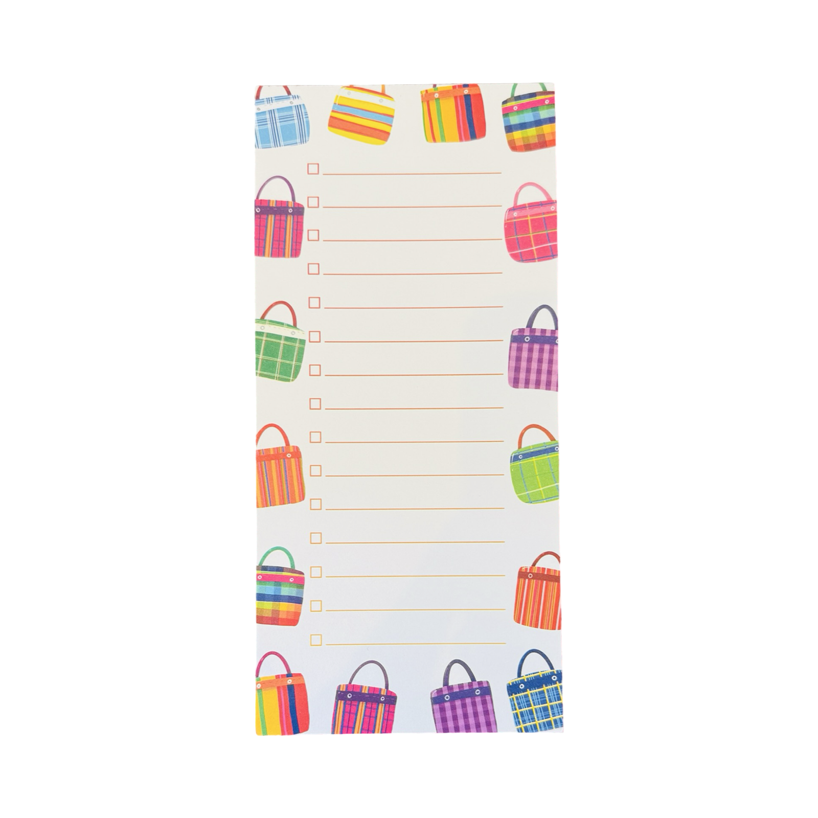 Stay organized in the cutest way with the Bolsitas Checklist Notepad, featuring colorful illustrated bolsitas lining the border for a playful touch. With neatly spaced lines and checkboxes for each task, this notepad makes planning groceries, errands, and daily to-dos feel a little more fun. Bright, cheerful, and easy to tear off when you are done, it is perfect for your desk, kitchen counter, or tucked inside your tote for lists on the go.