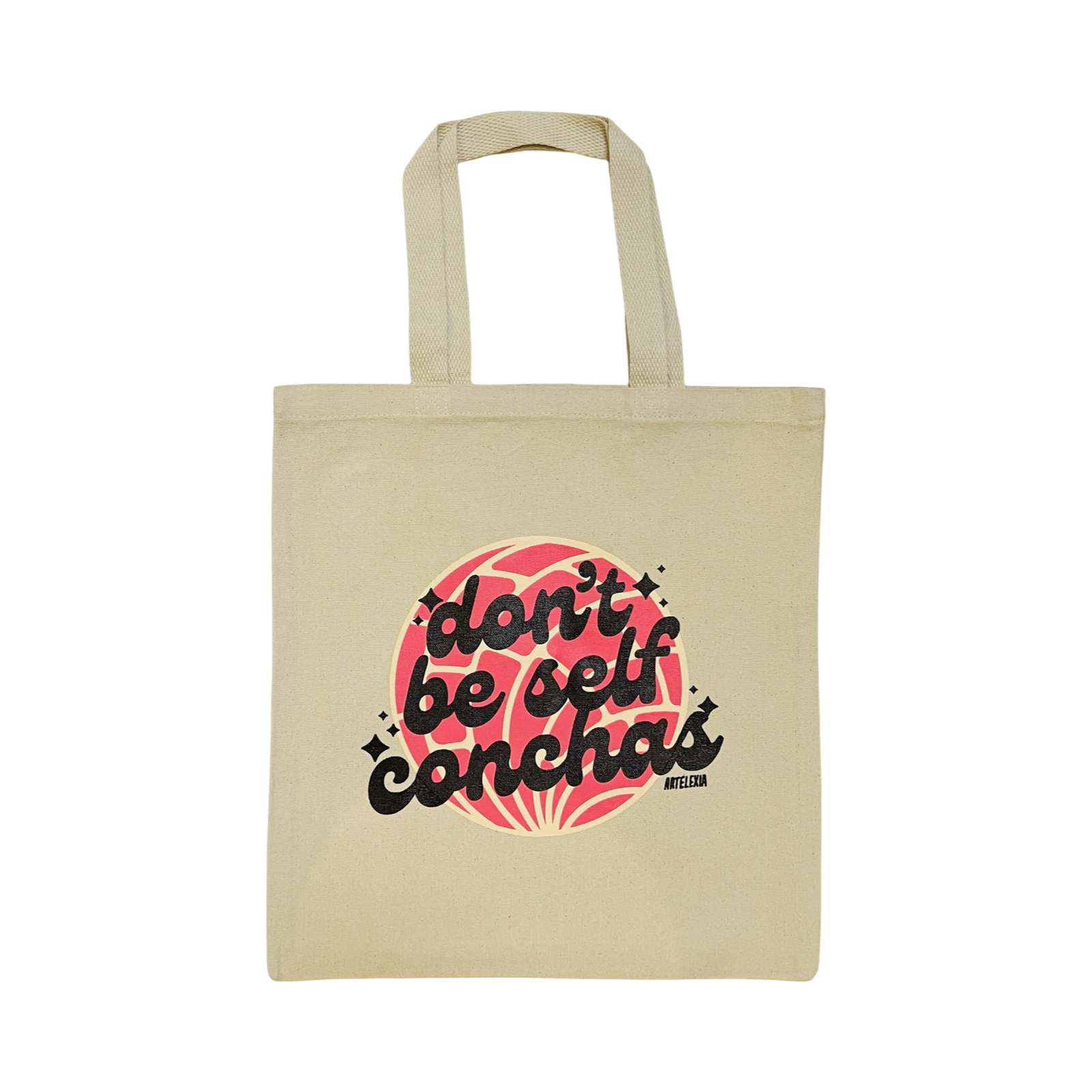 The Don't Be Self Conchas Tote Bag is a fun and playful way to showcase your love for pan dulce and positivity. Featuring a vibrant concha design with bold lettering, it’s a reminder to be confident and not hold back. Perfect for daily errands, shopping, or adding a touch of humor to your everyday routine.