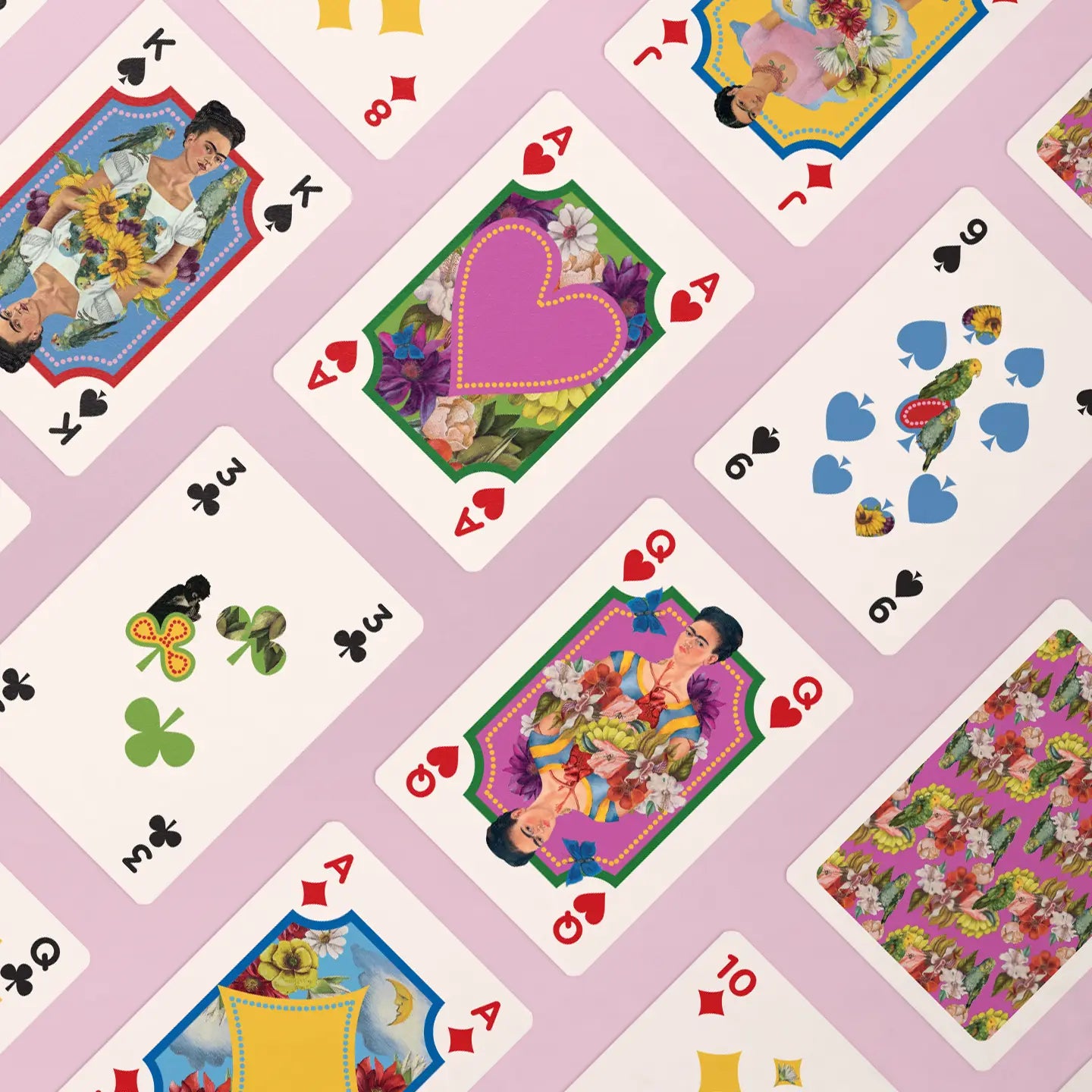 These Frida Kahlo Playing Cards celebrate the iconic artist through a vibrant, art-inspired deck. Each card features colorful illustrations influenced by Frida’s life and work, bringing bold imagery and cultural flair to every game. Packaged in a bright keepsake box, this deck is perfect for Frida fans, art lovers, and anyone who enjoys adding a creative touch to game night.