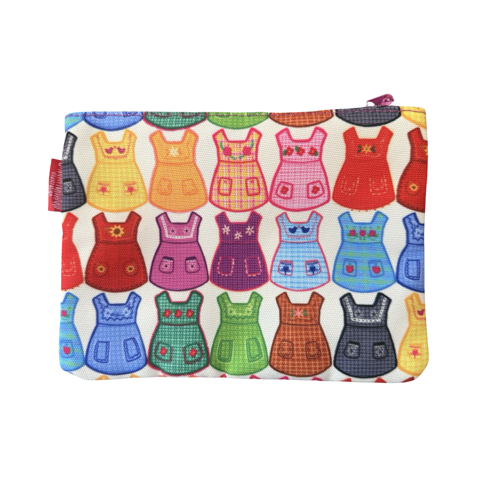 Celebrate tradition and color with the Mandiles Pouch, featuring a vibrant print of classic embroidered aprons in a rainbow of styles. Each illustrated mandil showcases charming details like pockets, florals, and stitched accents, bringing a nostalgic nod to kitchen memories and handmade heritage. With a secure zip-top closure and roomy interior, this pouch is perfect for cosmetics, pens, tech accessories, or everyday essentials. Bright, playful, and full of corazón, it is a sweet tribute to timeless kitchen style.