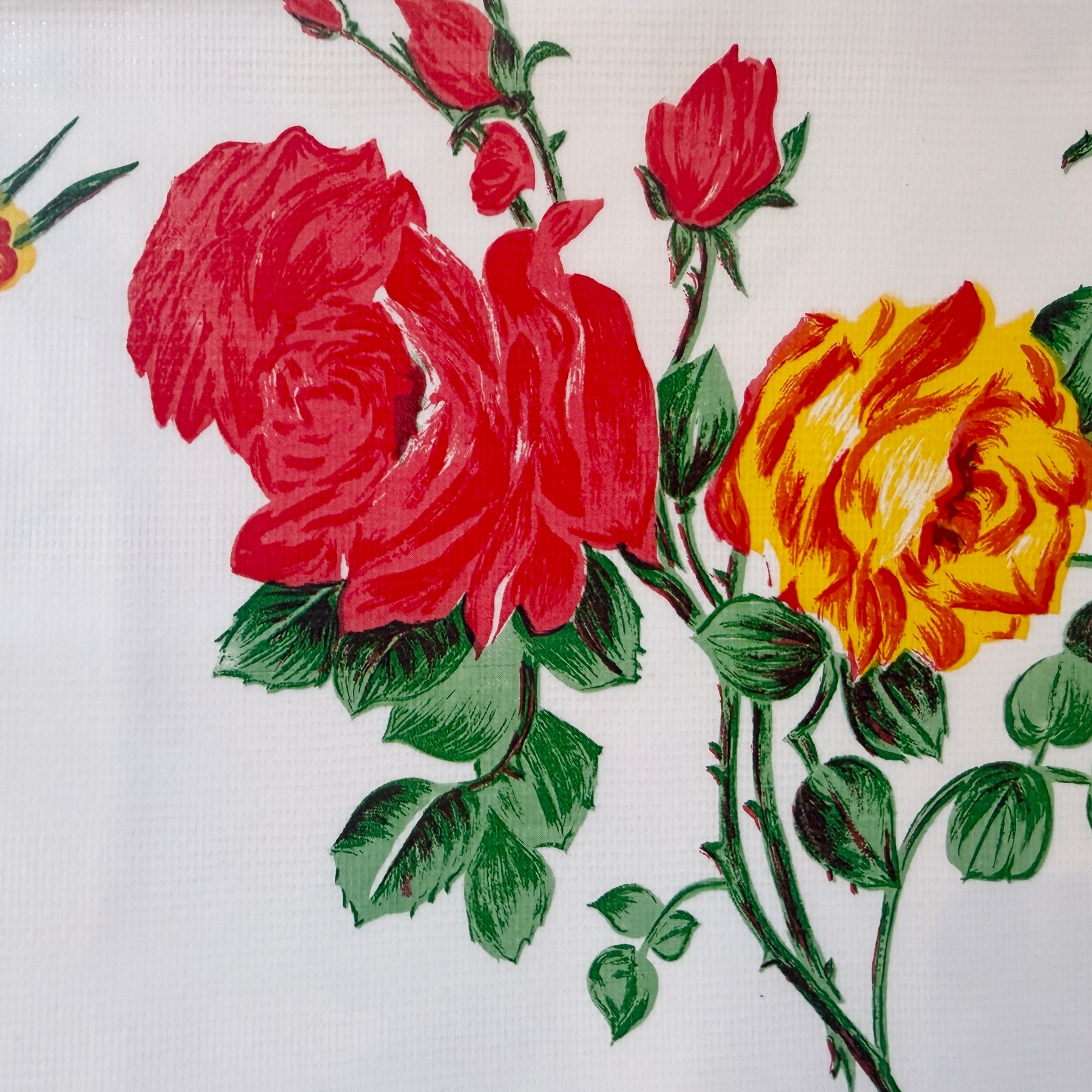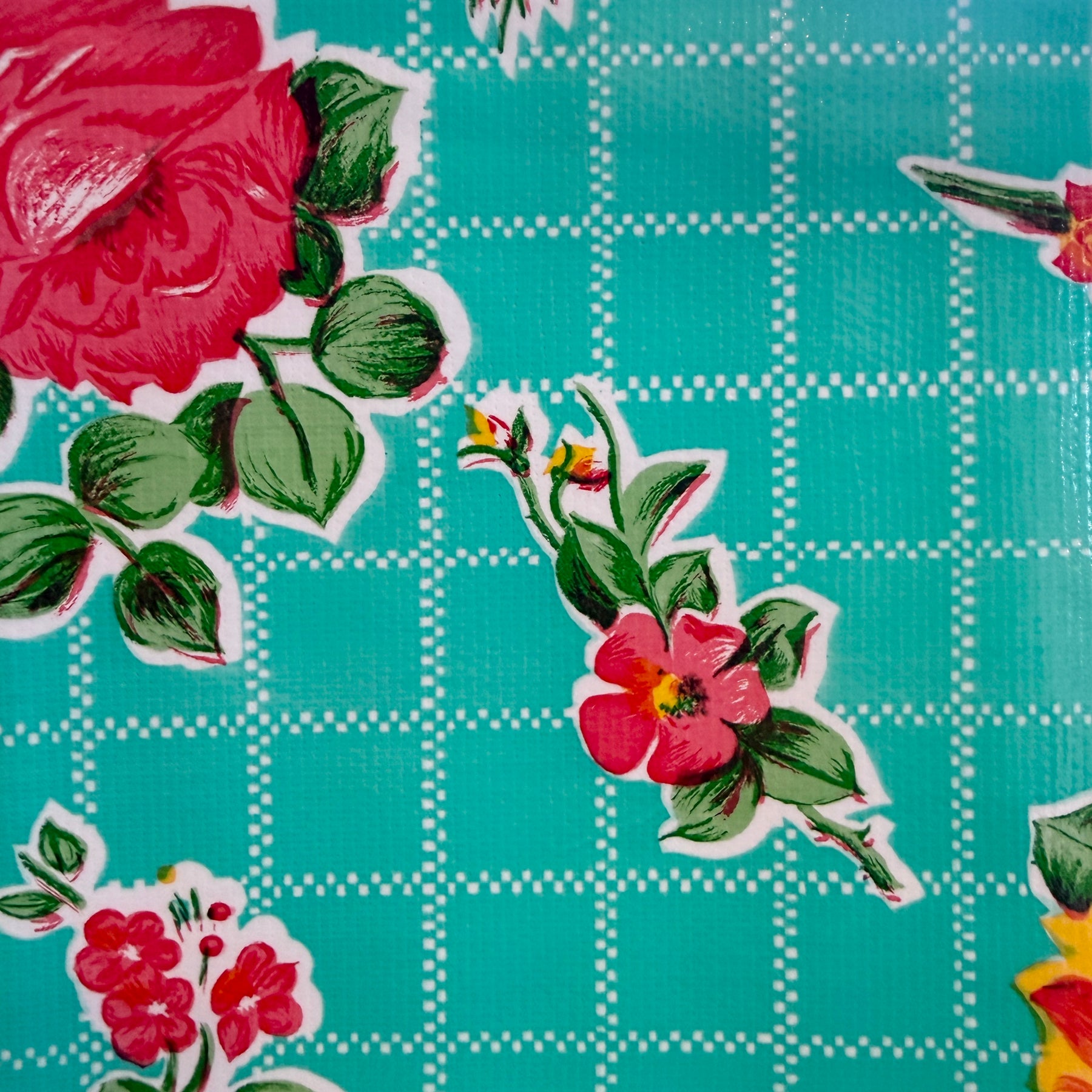 Add a whimsical pop of color to your home with this vibrant oilcloth table cover featuring a Rosegall design. The pattern showcases beautifully rendered motifs in bold, rich hues that instantly brighten any dining space. The durable oilcloth material resists spills and stains, making it both decorative and practical for everyday use.