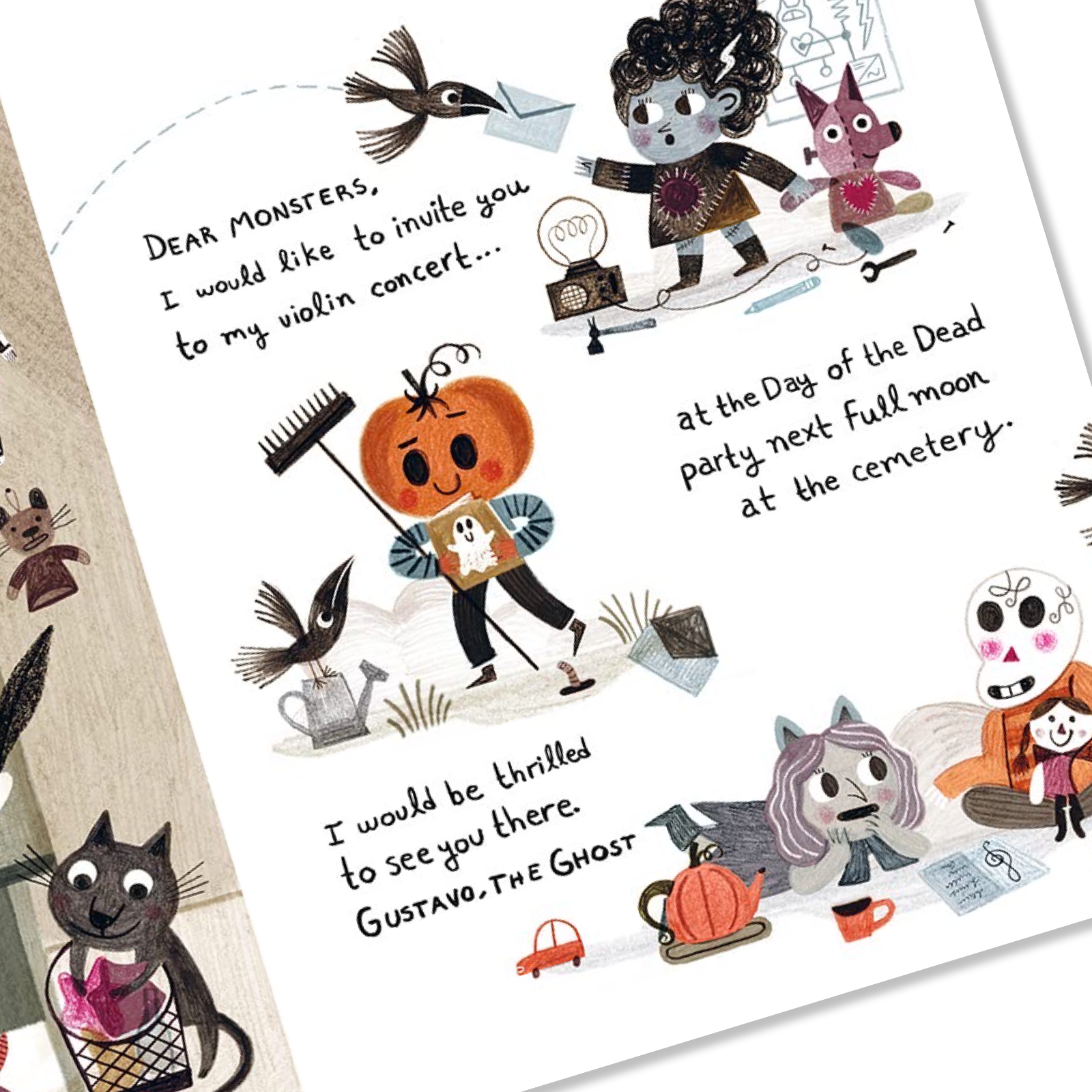 Gustavo is good at doing all sorts of ghostly things: walking through walls, making objects fly, and glowing in the dark. And he loves almost nothing more than playing beautiful music on his violin. But Gustavo is shy, and some things are harder for him to do, like getting in a line to buy eye scream or making friends with other monsters. Whenever he tries getting close to them, he realizes they just can’t see him. Now that the Day of the Dead is fast approaching, what can he do to make them notice him and to share with them something he loves? With fancifully detailed artwork and visual humor, debut picture-book creator Flavia Z. Drago’s vivid illustrations tell a sweet and gently offbeat story of loneliness, bravery, and friendship that is sure to be a treat for little ghouls and goblins everywhere.